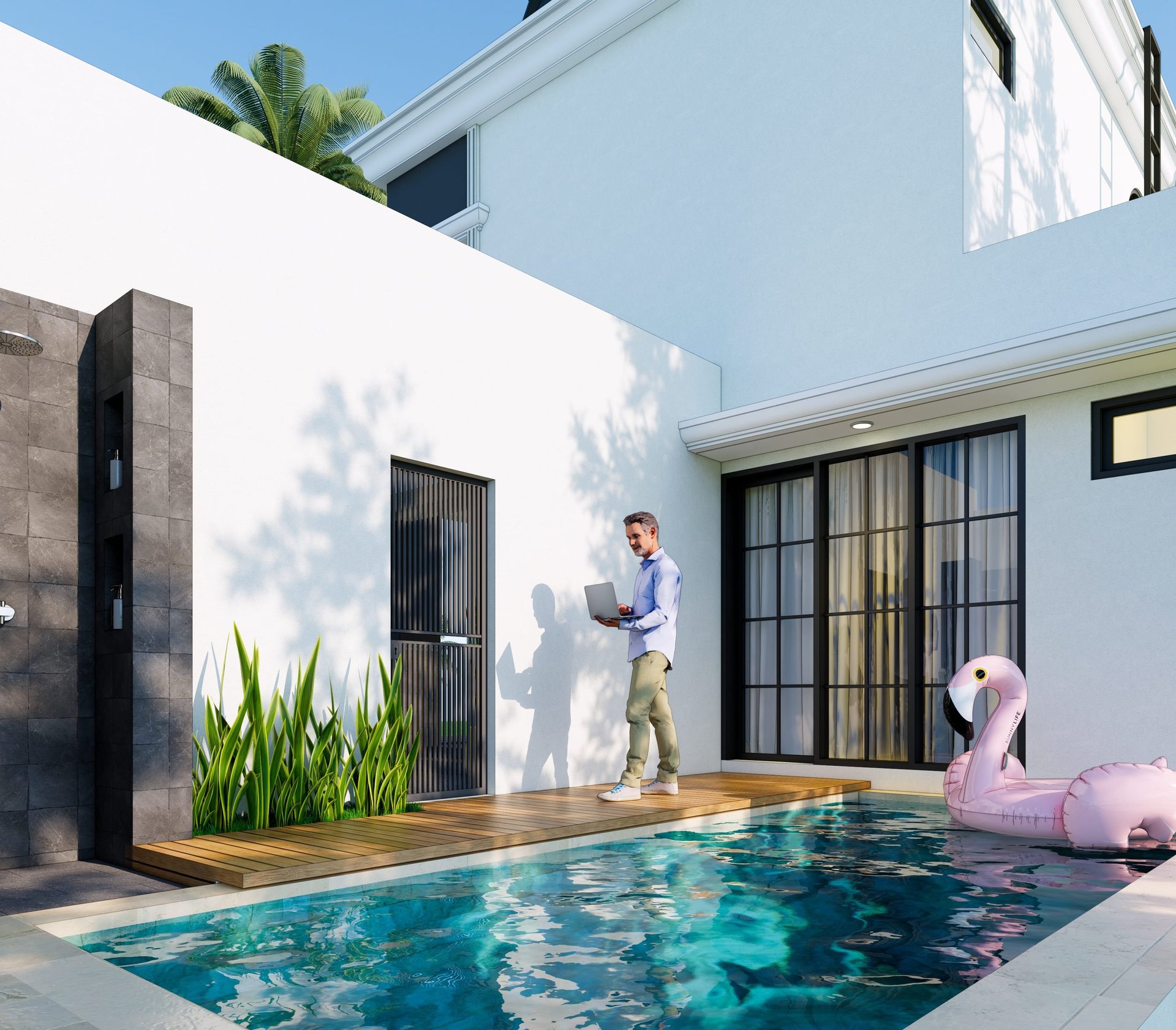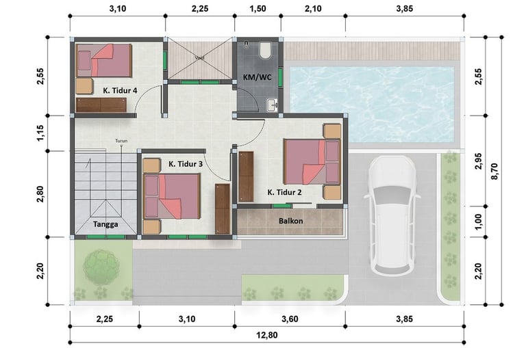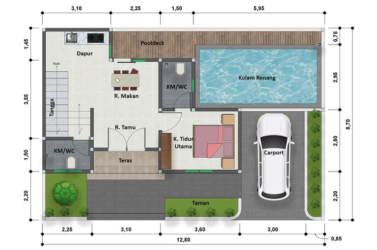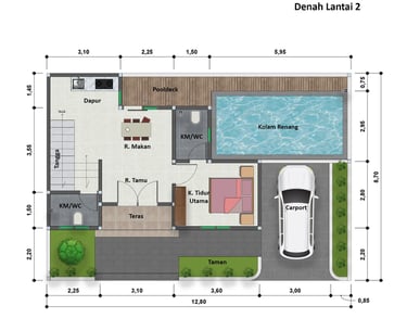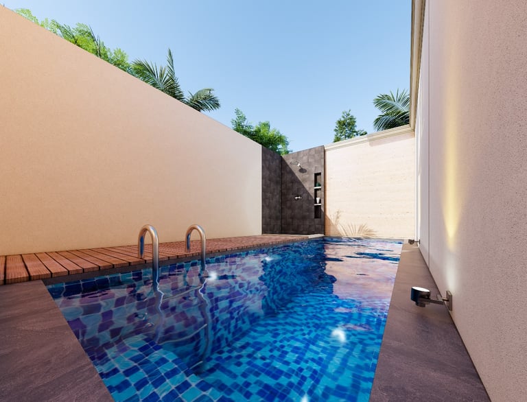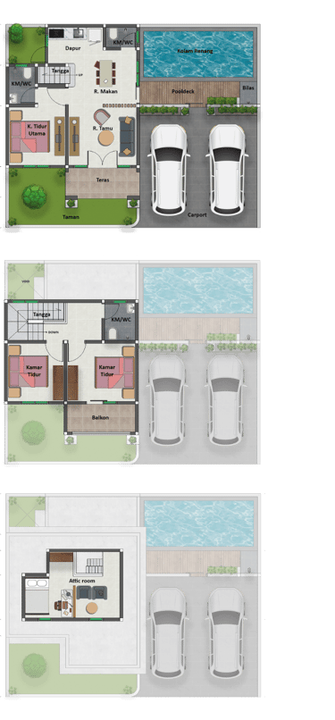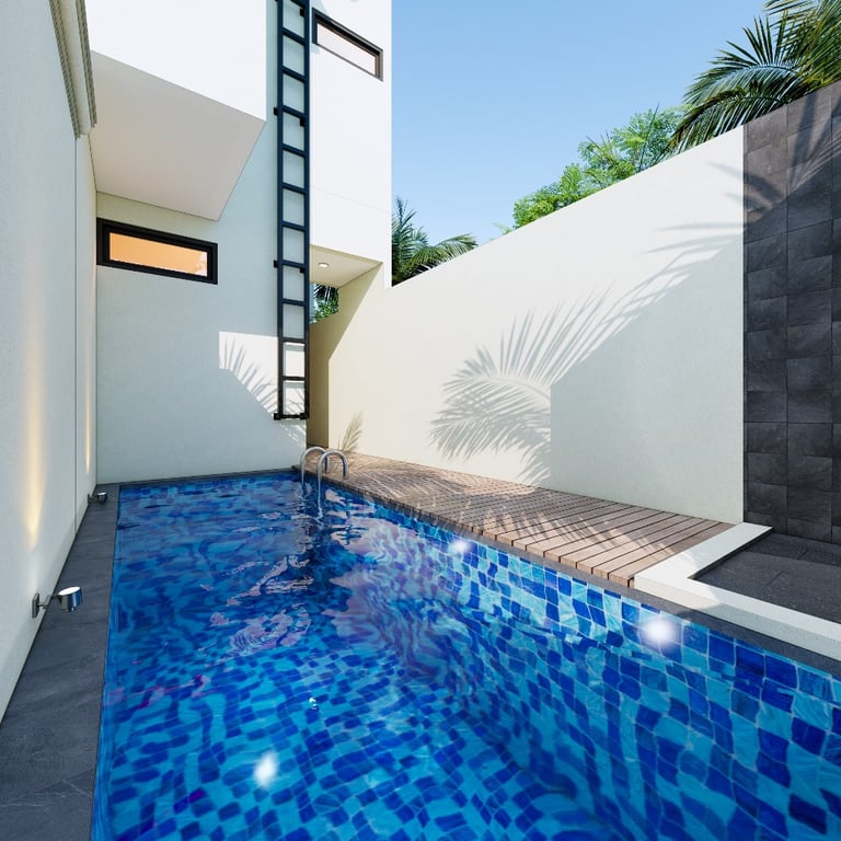 Kolam Renang Pribadi – Setiap rumah dilengkapi kolam renang pribadi yang terletak strategis di area belakang.